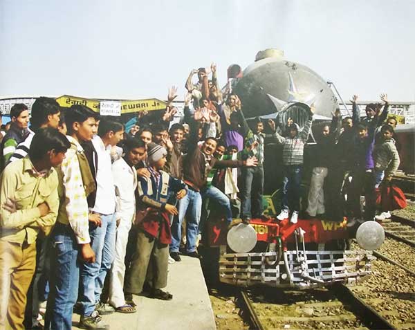 The next day all the leading newspapers carried news of this great run and the TV channels ran the piece on prime time. It was for sure that the Steamers were back with a bang !! The WP arrived to a rousing welcome at the Rewari station, The local crowd that had assembled at the platform was delighted to see a steam engine with Rewari written on it rolling in. Everyone wanted to have a picture clicked with the steam engine, which the security prevented for a while but the free sprit of India soon prevailed and the entire group was on the Locomotive.